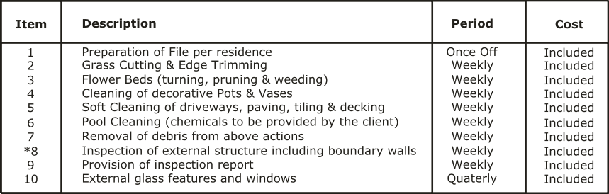 1. The client and the service provider have entered into this agreement for the external maintenance of the property located at: